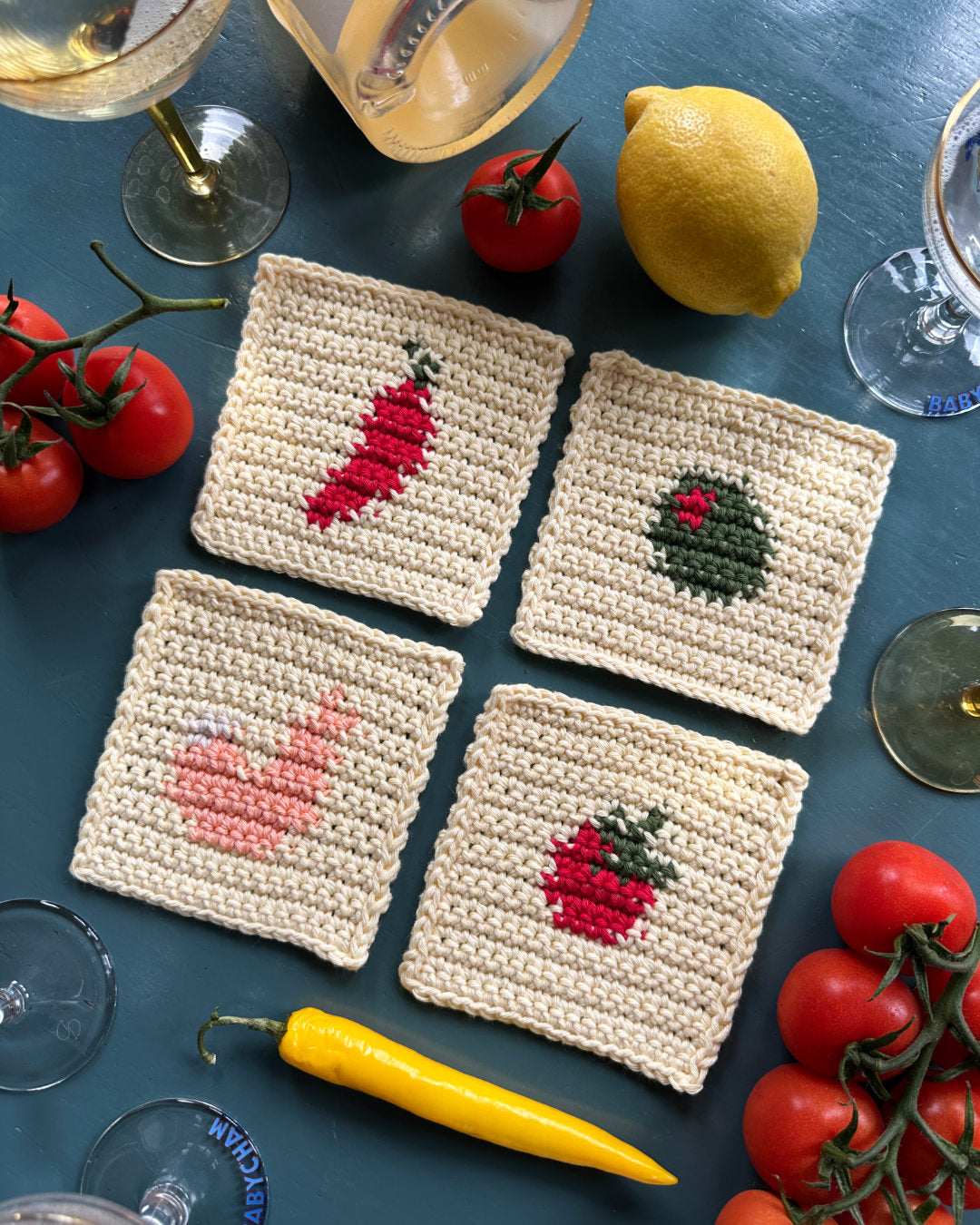🦐 Presenting the perfect dinner party gift: Aperitivo coasters! This crochet pattern is a modern, minimalistic ode to Italy's beloved pre-dinner ritual, symbolised by olives, shrimp, cherry tomatoes and chili peppers. Perfect for those charcuterie cuties who dreams in antipasti.