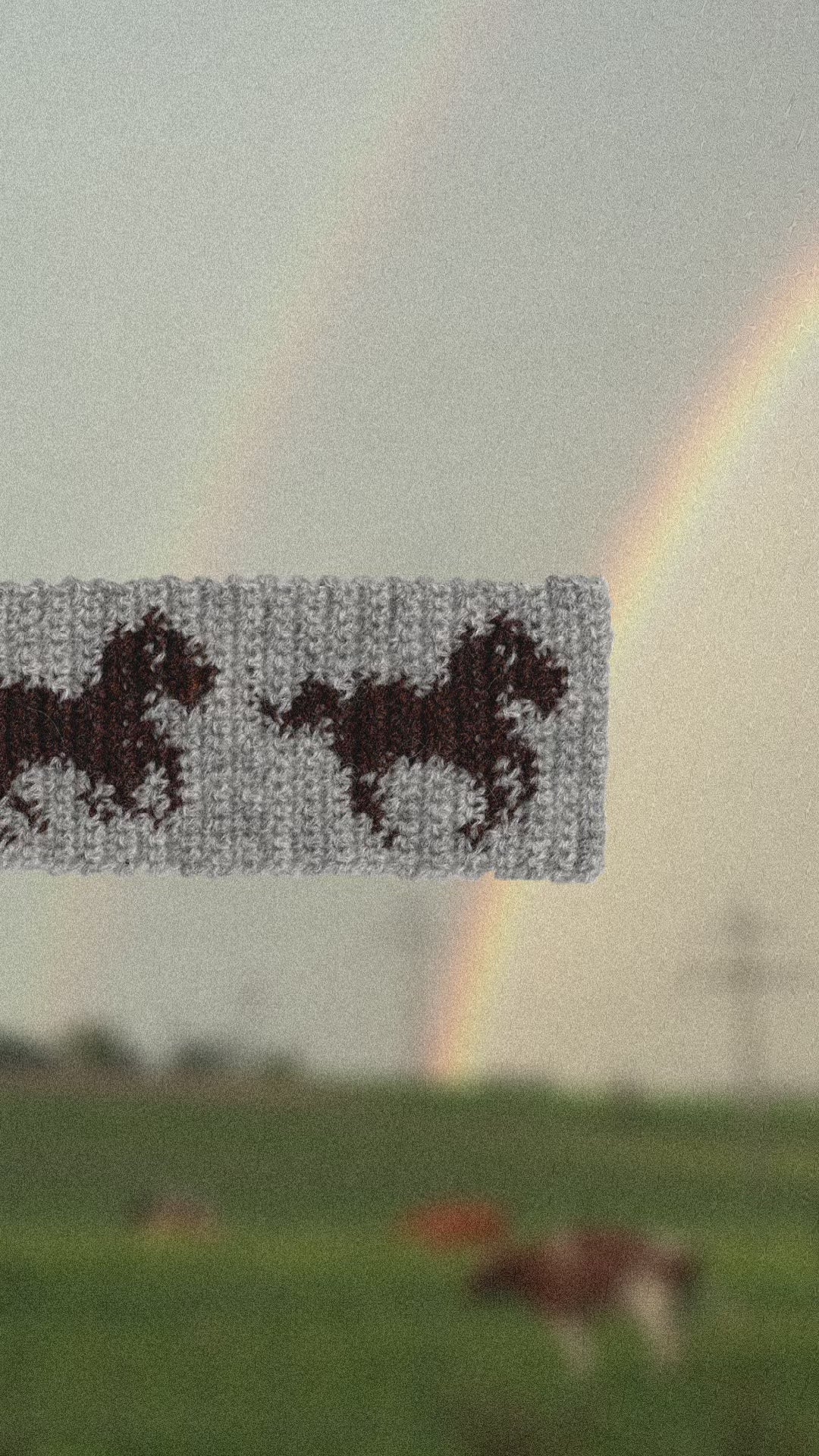Yarn: super fine / fingering / sock weight in two colours – 40 gr (approx. 200 m) for the background and 15 g (approx. 75 m) for the horses